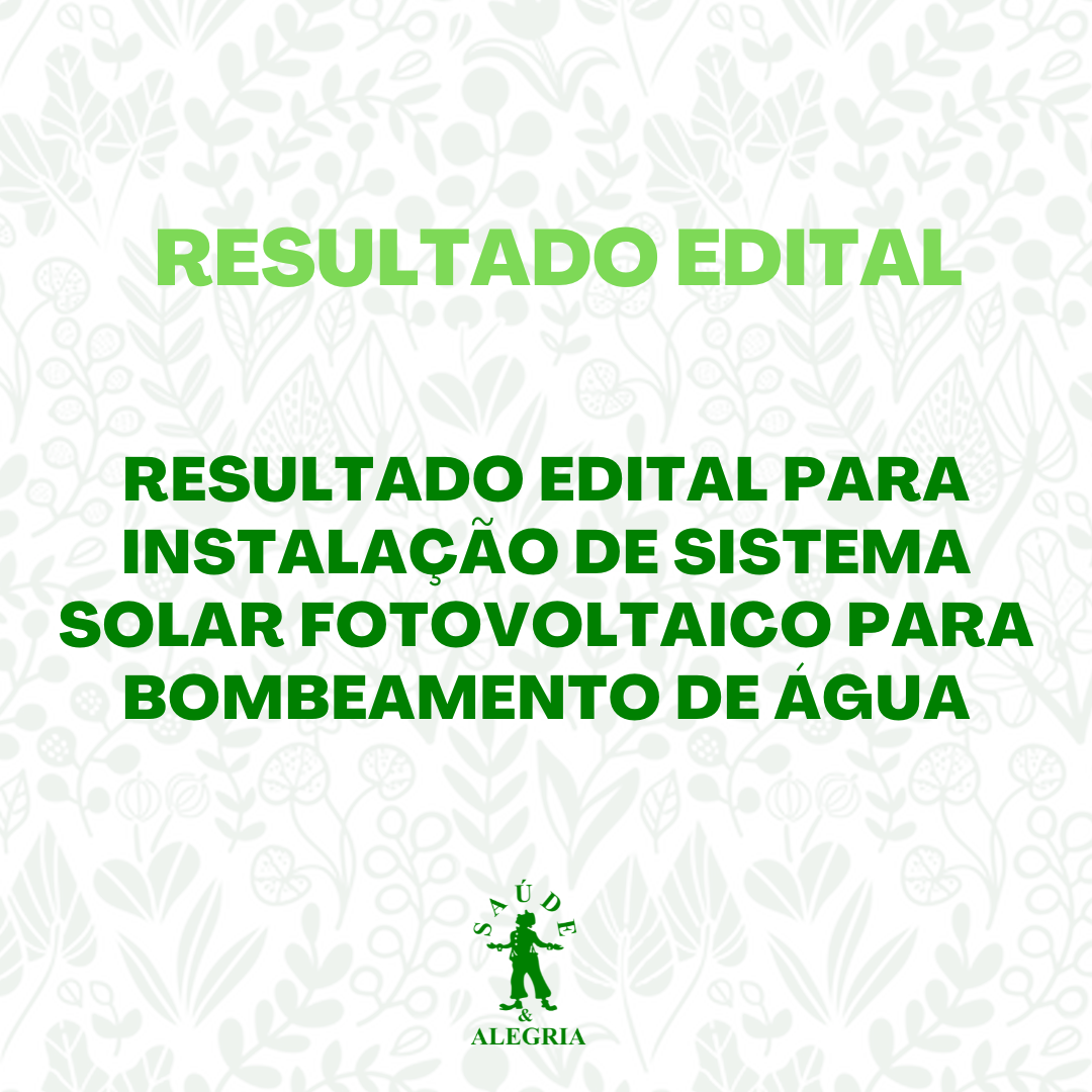 Resultado edital para instalação de sistema solar fotovoltaico para bombeamento de água