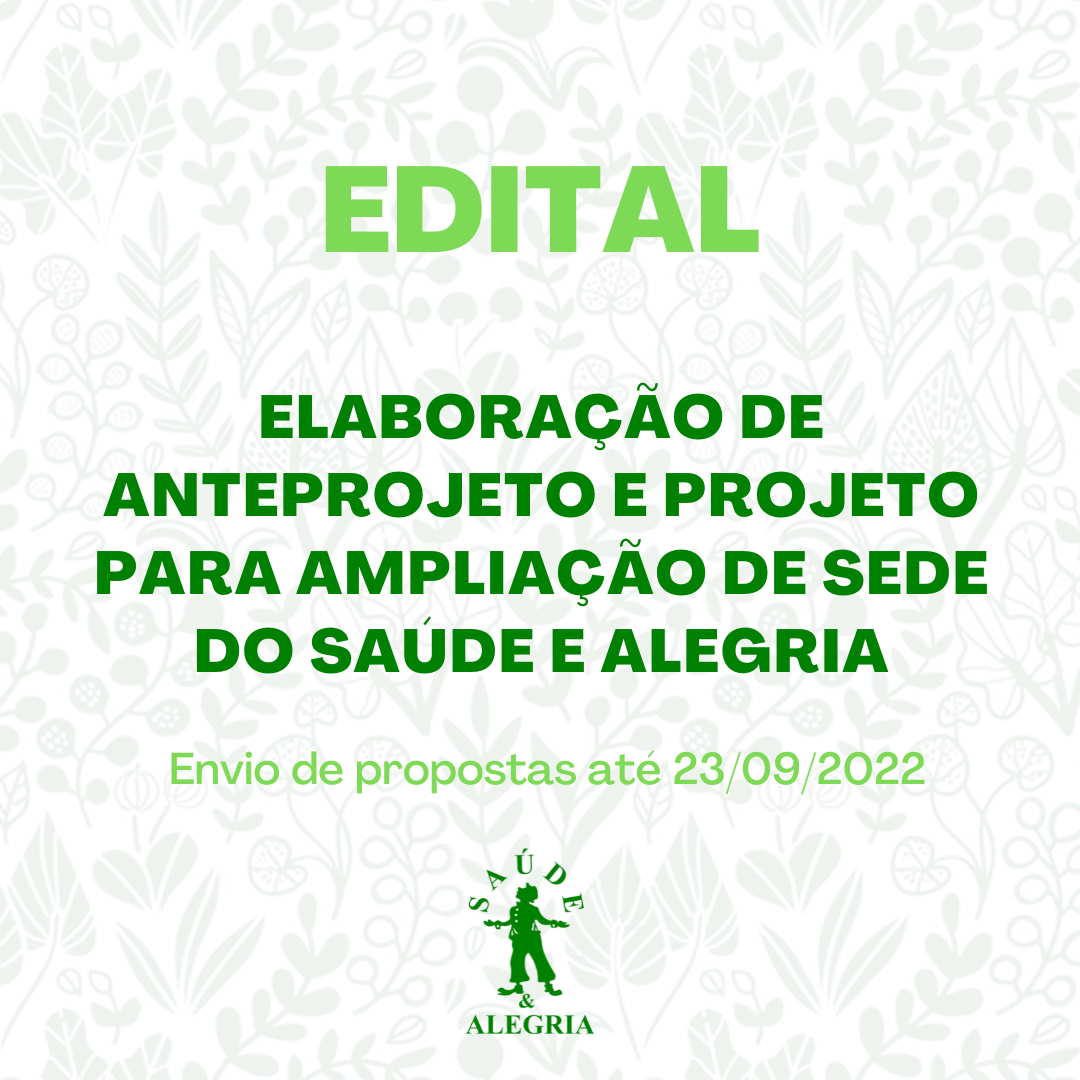 Edital para elaboração de anteprojeto e projeto executivo para ampliação da sede do Projeto Saúde e Alegria