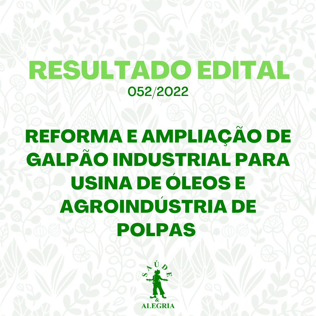 Resultado edital para reforma e ampliação de galpão industrial para usina de óleos e agroindústria de polpas