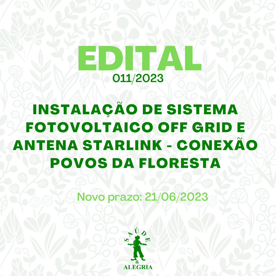 O Centro de Estudos Avançados de Promoção Social e Ambiental – CEAPS torna público o TERMO DE REFERÊNCIA (Nº 011/2023) para contratação de empresa especializada para instalação de sistemas fotovoltaicos off grid e antena de acesso à internet (Starlink) em …