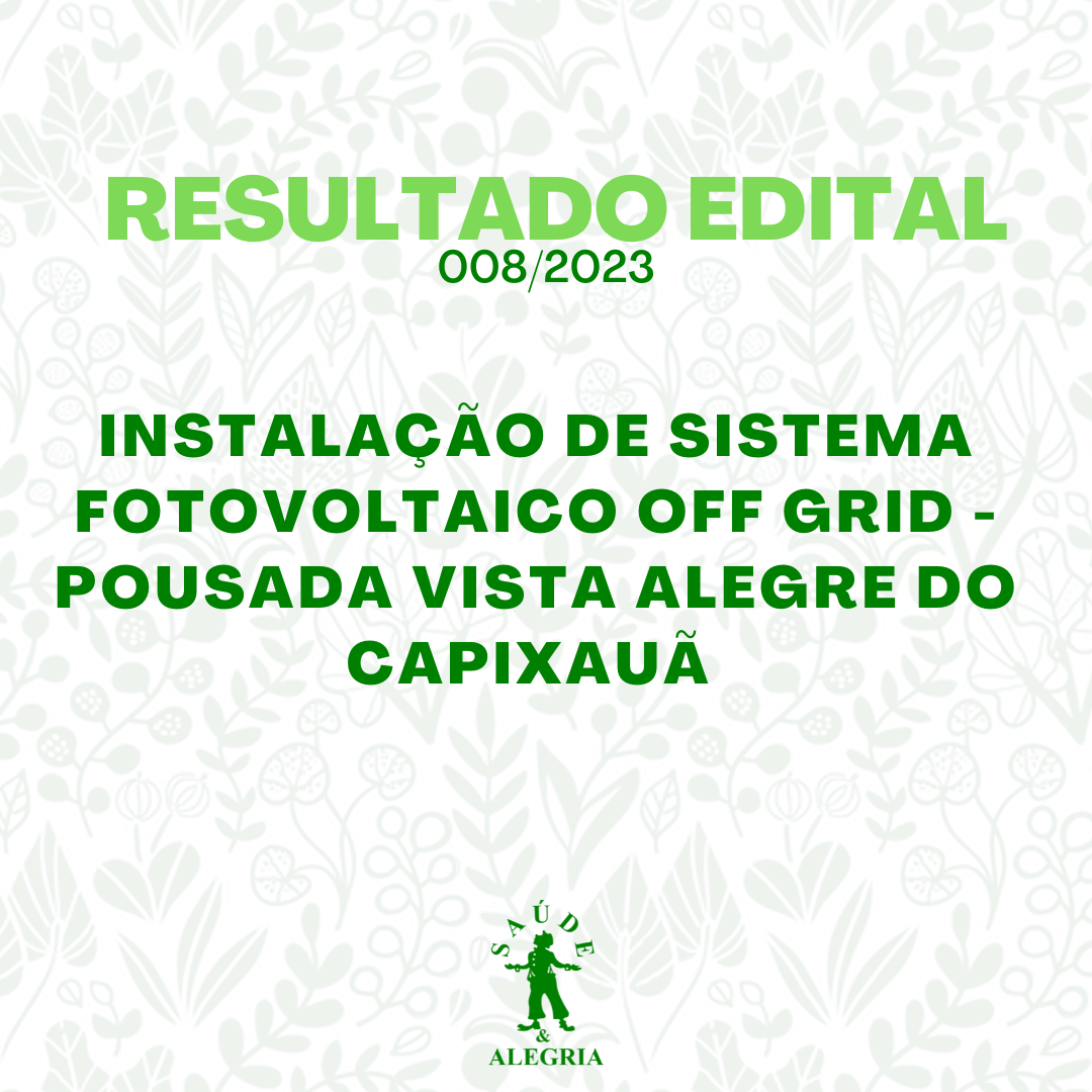 O Centro de Estudos Avançados de Promoção Social e Ambiental – CEAPS torna público o resultado do TERMO DE REFERÊNCIA (Nº 008/2023) Instalação de Sistema Fotovoltaico Off Grid – Pousada Vista Alegre do Capixauã. A empresa selecionada é: