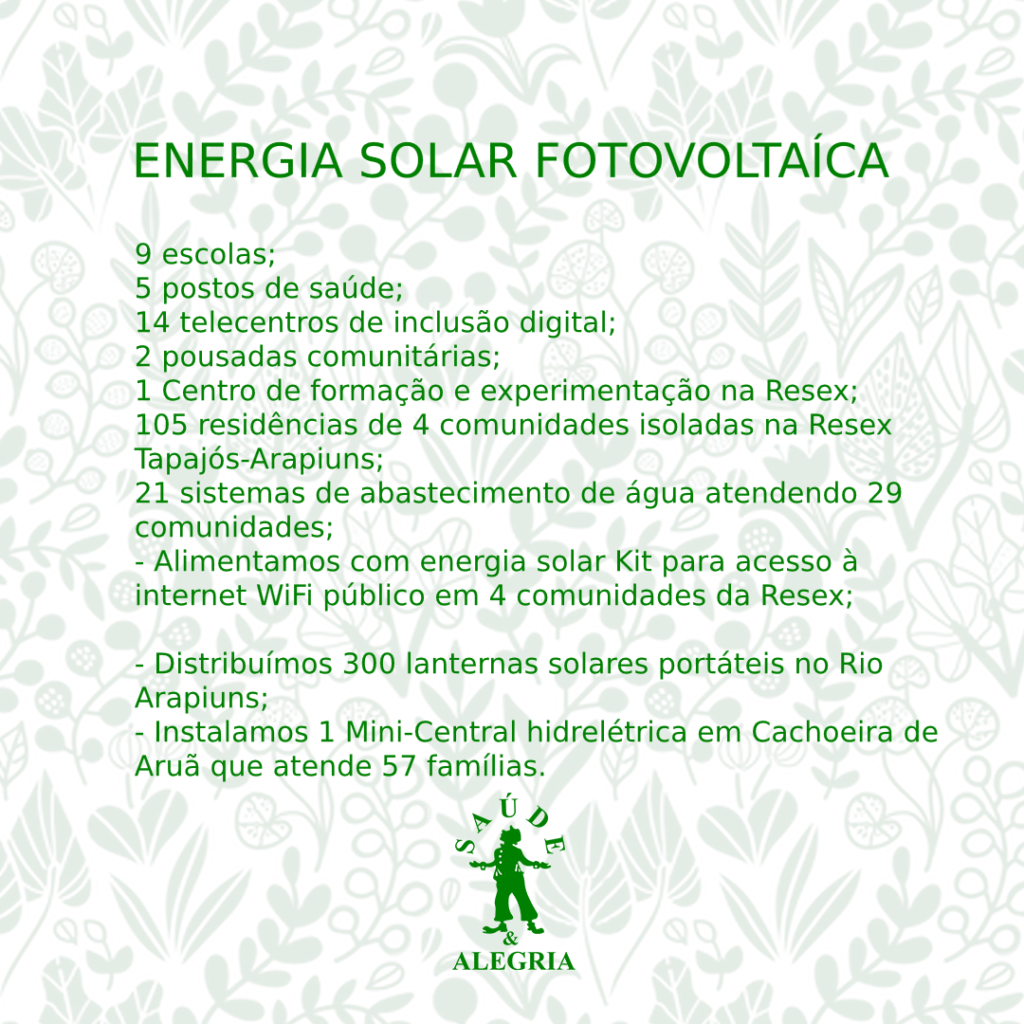 #Energianafloresta – A falta de energia elétrica ainda é uma realidade em muitas comunidades da região do oeste do Pará e, além de prejudicar a qualidade de vida das populações ribeirinhas, representa um entrave a seu desenvolvimento socioeconômico. Por isso, o Projeto Saúde e Alegria (PSA) atua também na eletrificação rural, como parte do programa Floresta Ativa de fomento à Economia da Floresta.