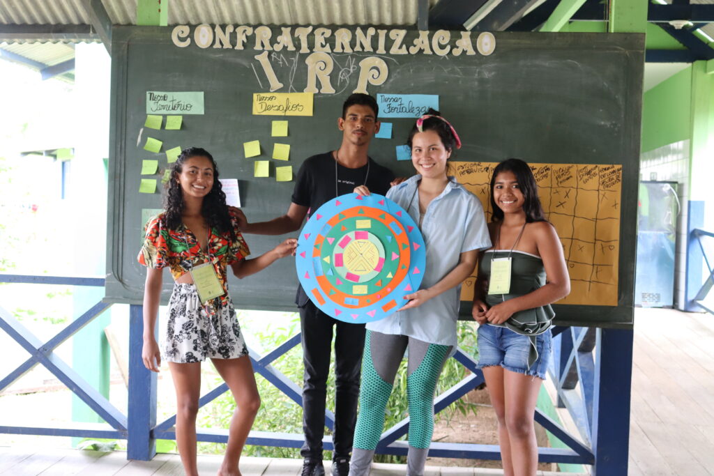 A Aldeia é uma das sete organizações integrantes da Escola de Redes Comunitárias da Amazônia, que no período de 30 de abril a 01 de maio, recebeu as ações de campo do projeto. O professor e as jovens lideranças se deslocaram de suas casas, algumas mais distantes da escola indígena, para participar da oficina com o objetivo de refletir e dialogar sobre o território, mapear fortalezas, desafios e sonhos, e desenhar estratégias de comunicação comunitária da região.