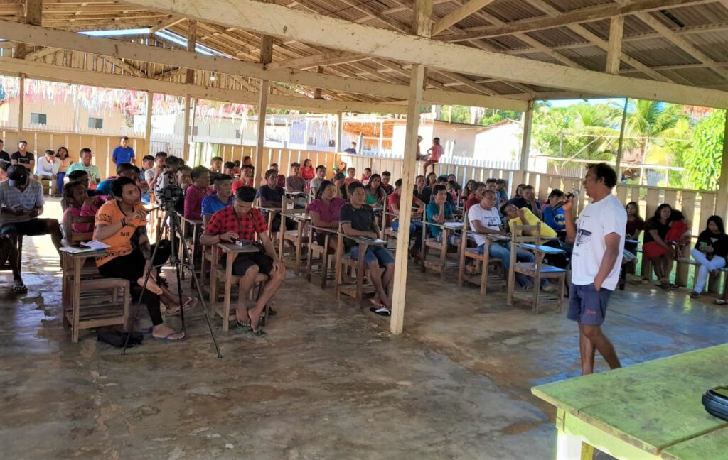 Encontro de avaliação da safra foi realizado na aldeia Waro Apompo região do Rio Cururu e reuniu mais de cem lideranças indígenas de trinta e uma aldeias mundurukus. Coletivo Poy foi criado em 2022 para estruturar alternativas sustentáveis e já conquistou seus primeiros resultados com quase 32 toneladas de castanhas do Pará comercializadas
