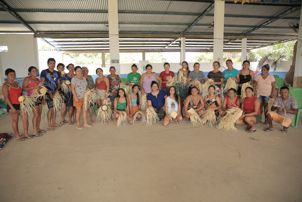 Mulheres de cinco comunidades da região do rio Arapiuns participaram, na comunidade Vila Brasil, de uma oficina criativa voltada ao aprimoramento técnico do artesanato com palha de tucumã. A atividade integra as ações da Escola Floresta Ativa e foi promovida pelo Projeto Saúde e Alegria e Turiarte com apoio da Fundação Toyota