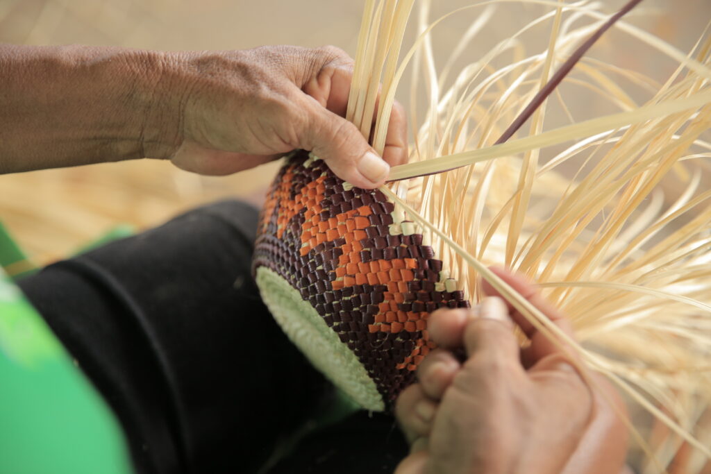 Com o aumento da demanda por produtos artesanais feitos a partir da palha de tucumã, a Cooperativa Turiarte que atua com turismo e artesanato de base comunitária, sentiu a necessidade de fortalecer trocas de saberes e aprimorar as técnicas da produção. A coordenadora de negócios comunitários e gênero do Projeto Saúde e Alegria Olívia Beatriz destacou que a proposta da oficina é ampliar as possibilidades de produção com foco na qualidade do acabamento: “Tem diversas mestras artesãs que estão aqui e que estão passando conhecimento do refinamento do artesanato da palha do tucumã”.