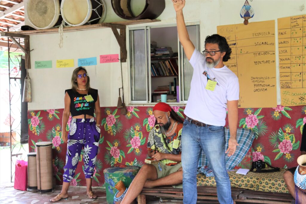 “O debate foi fundamental para delinear o conteúdo que nós vamos disponibilizar neste curso para as jovens lideranças. Esse debate sobre tecnopolítica, reapropriação e autonomia tecnológica, autonomia comunicacional, foi importante para trabalhar essa consciência porque nós estamos num processo de alienação técnica. O que nós fizemos hoje aqui é a base do alicerce dessa formação” – explicou Jader Gama, professor da Fundação Escola Bosque e especialista da Escola de Redes Comunitárias da Amazônia.