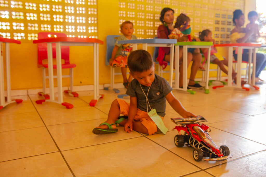 Com a oportunidade de conseguir brinquedos para o público através do edital, as profissionais se uniram e escreveram um projeto para concorrer à proposta. A pedagoga explica ainda que brincar é fundamental para o desenvolvimento cognitivo, social e mental nessa fase da vida. “Tais atividades são tão importantes quanto brincar de boneca, carrinho ou de legos, porém, é vital possibilitar outras formas de brincar, bem como, possibilitar o uso de objetos simbólicos como são os brinquedos convencionais às crianças ribeirinhas e indígenas, visto que agregam vivências novas e mudanças qualitativas no comportamento infantil”.