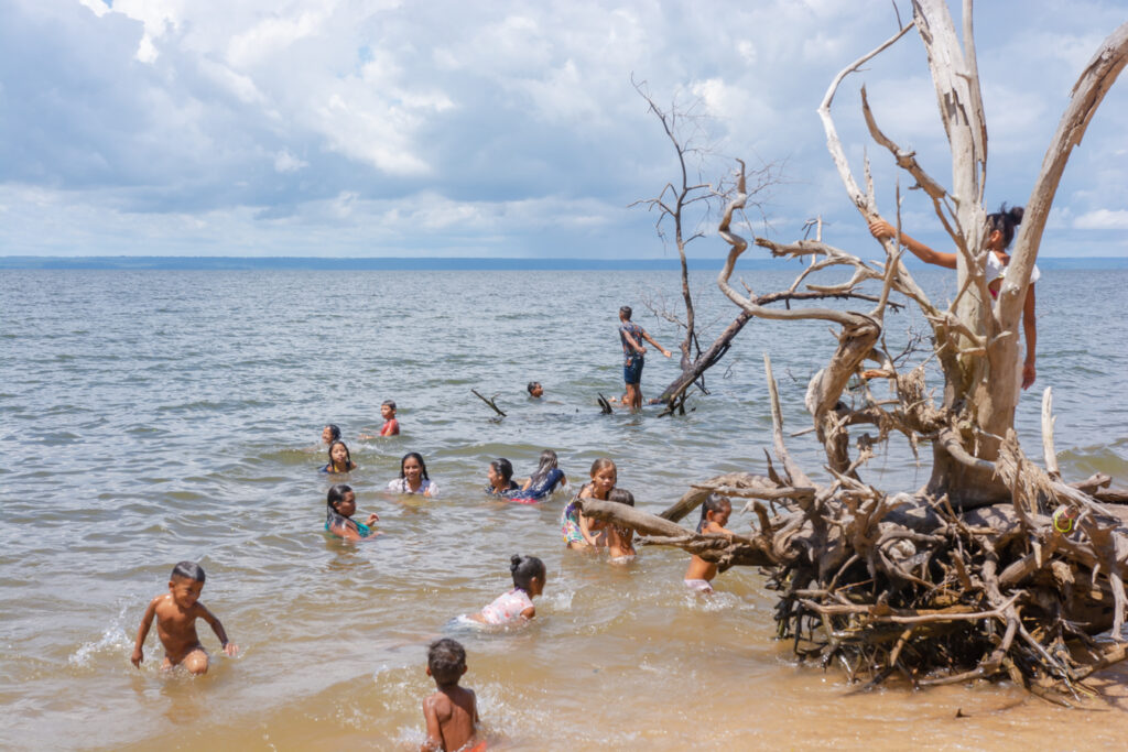 Crianças ribeirinhas se divertindo nas águas do rio Tapajós, em Santarém. Fotos: Pedro Alcântara/acervo Projeto Saúde e Alegria.