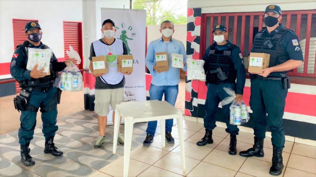 Distribuição de kits de higiene e de proteção individual para enfrentamento à covid-19 foi realizada para a Polícia Civil/Administração Distrital de Alter do Chão, Conselho Comunitário, Associação de Turismo Fluvial de Alter do chão – Atufa e comunidades do Eixo Forte;