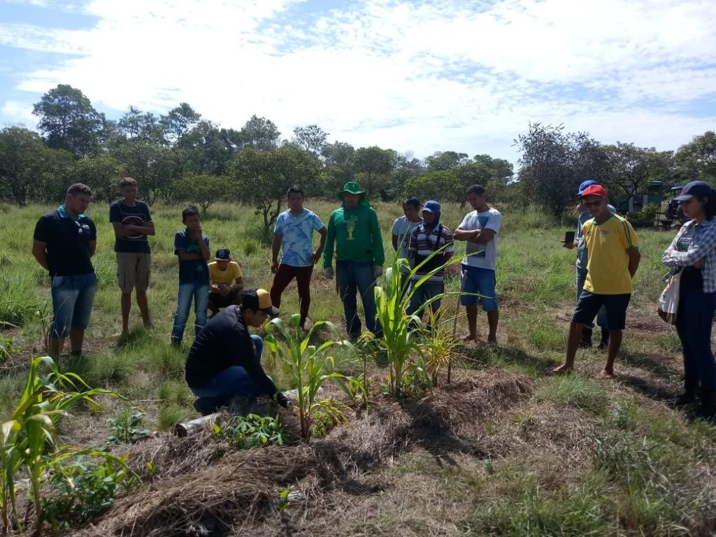 Em um dia intenso de conhecimentos teóricos e práticos, comunitários participaram de inúmeras atividades com uso de Sintropia para que possam implementar nas comunidades de origem. Dentre as ações, aplicaram as técnicas aprendidas na nascente do Igarapé do Carão para recuperação através da Sintropia.