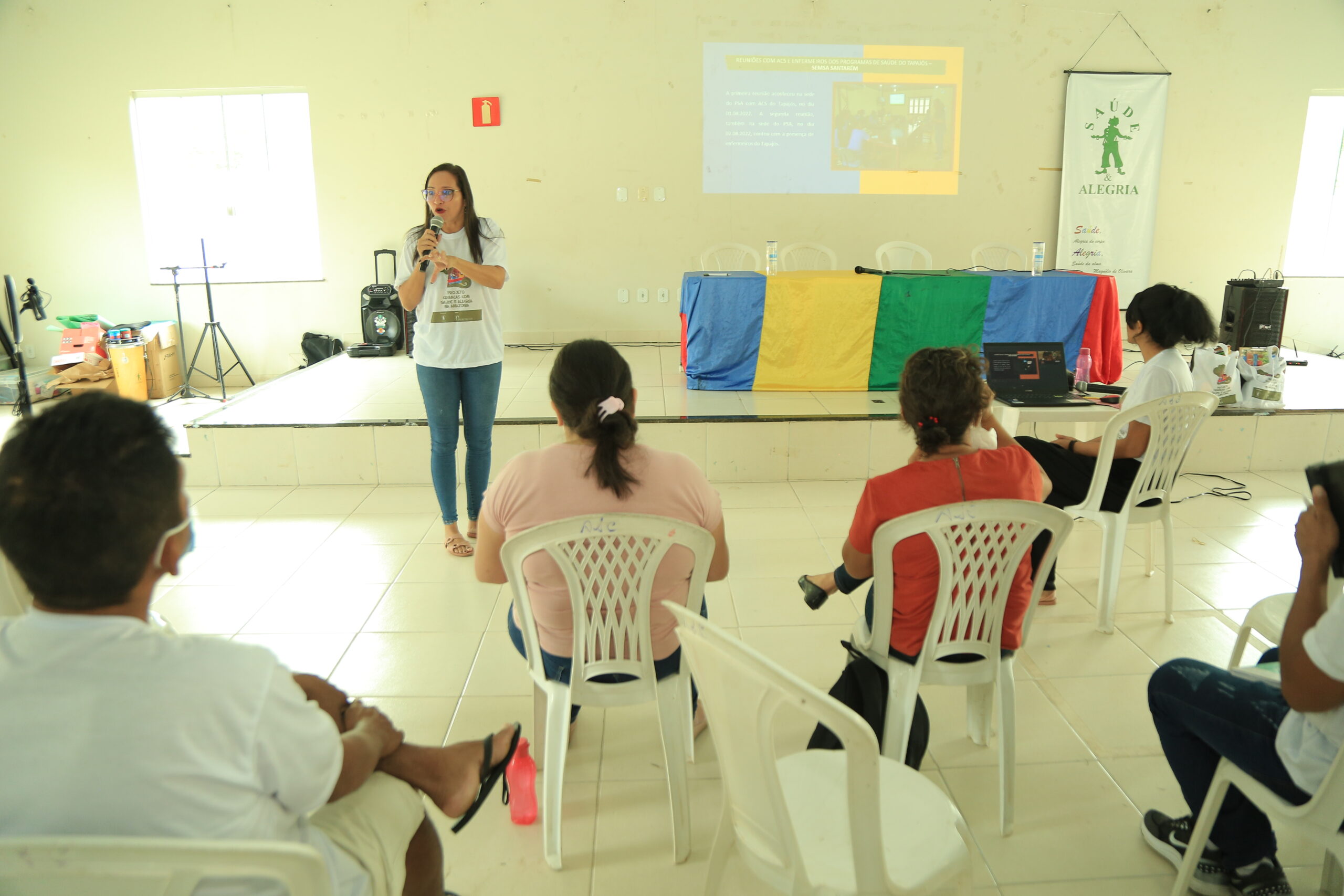 Formação faz parte do Projeto ‘Criança com Saúde e Alegria’. Voltada aos profissionais de cinco comunidades da Reserva Extrativista Tapajós Arapiuns, debateu resultados preliminares da escuta promovida ao longo de 2022. Também foram entregues kits para acompanhamento do desenvolvimento de crianças da região