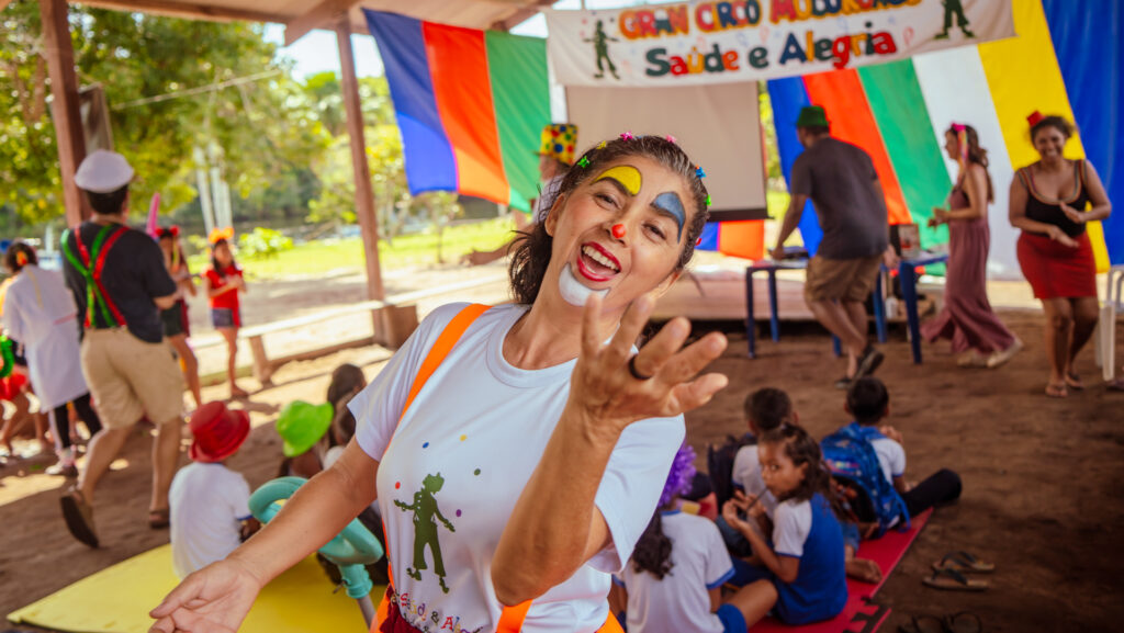 Com a possibilidade de utilizarem adereços, cada criança e adulto que se envolveu no circo pode ter um dia de palhaço, e fazer um circo que leva informação e conscientização sobre saúde.