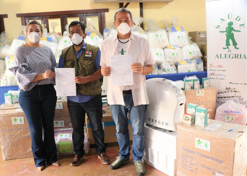 Campanha #ComSaudeeAlegriaSemCorona tem firmado parcerias com poder público para atender populações de áreas isoladas da floresta, possibilitando acesso à saúde. Na foto, Secretário Regional do Governo do Pará – Henderson Pinto e Caetano Scannavino, coordenador do PSA.