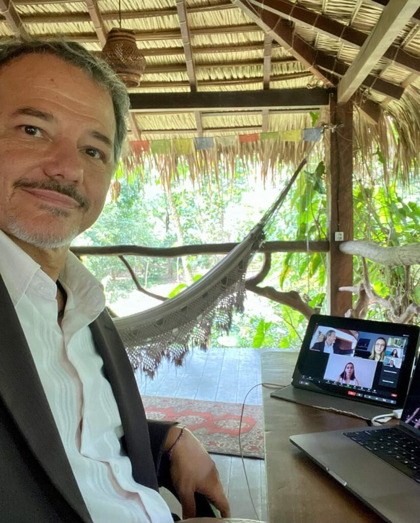 Caetano Scannavino, coordenador do Projeto Saúde e Alegria em diálogo com outras entidades através de lives e reuniões online em tempos de pandemia.