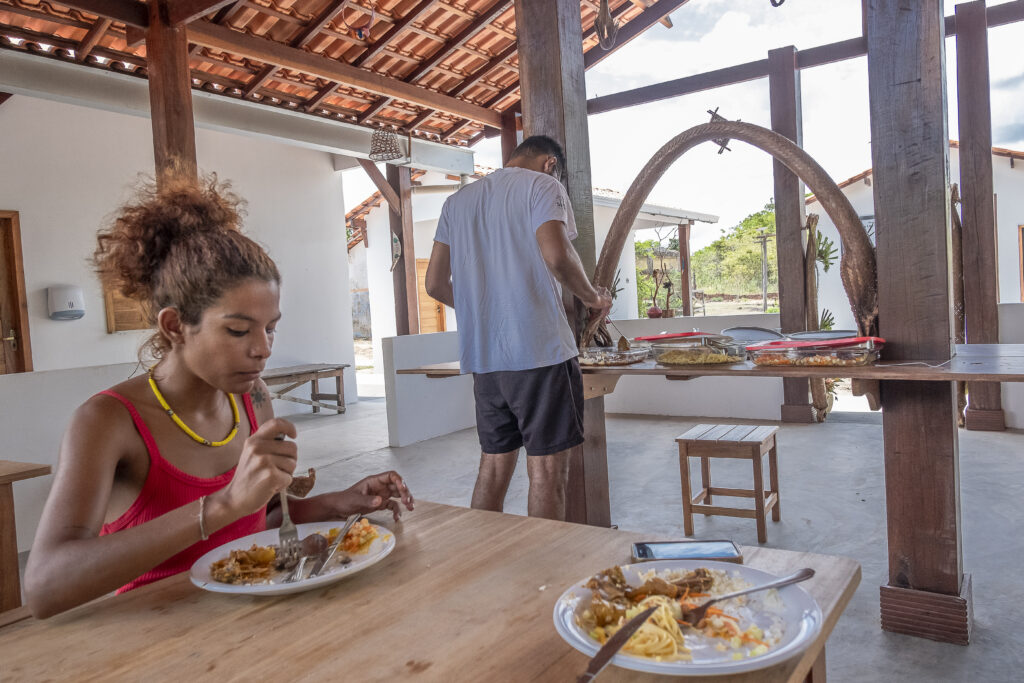 Visitantes se servem no refeitório da Pousada Uka Suri.