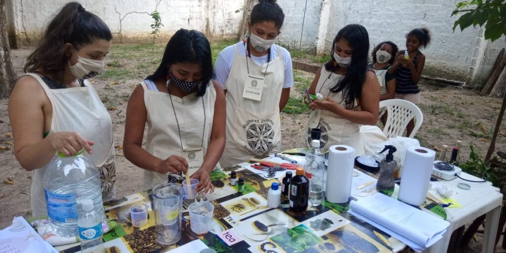 Vinte mulheres indígenas do Oeste do Pará estão aprendendo a transformar matéria prima oriunda de áreas de conservação ambiental em cosméticos artesanais e veganos no curso de ‘linha de autocuidado natural artesanal e vegana’. Durante cinco dias de imersão nas técnicas de extração e fabricação, estão aprendendo a produzir sabonetes, shampoos, extratos, óleos de massagem medicinal, desodorante, tônico facial e condicionador.