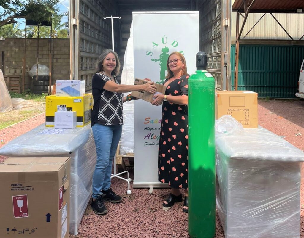 Na última segunda-feira (21), a equipe do Projeto Saúde e Alegria concluiu mais uma rodada de doações às Secretarias Municipais de Saúde de Santarém, Aveiro e Belterra. Foram doados os seguintes itens: macas com apoio de cabeça elevável, leito hospitalar motorizado, bomba de infusão, monitor multiparamétrico, suporte de soro com RDZ, Cilindro de oxigênio medicinal 8m³, acessórios de oxigenoterapia, concentradores de oxigênio 5L, kits válvula + fluxômetro p/ oxigênio, colchões pneumático e desfibrilador/cardioversor, concentradores de oxigênio, autoclaves e caixas térmicas.