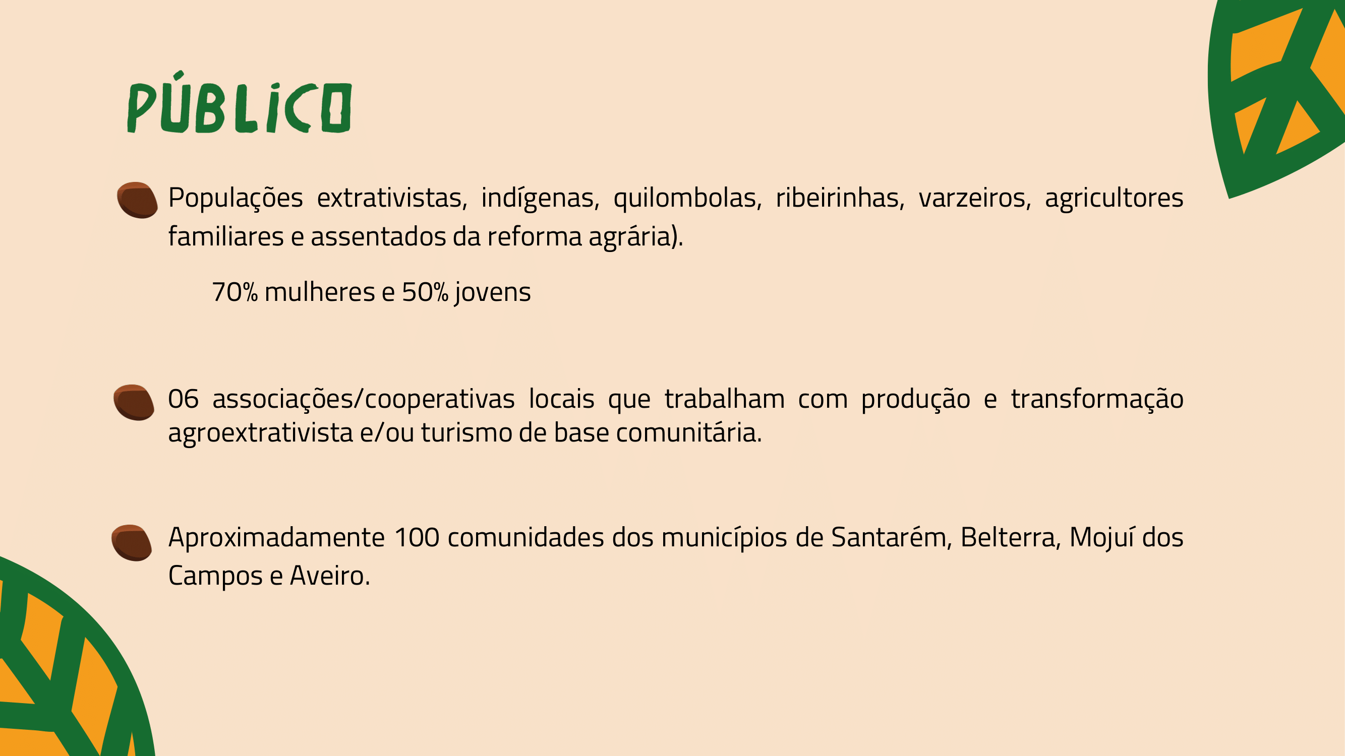 comunidades dos municípios de Santarém, Belterra, Mojuí dos Campos e Aveiro.