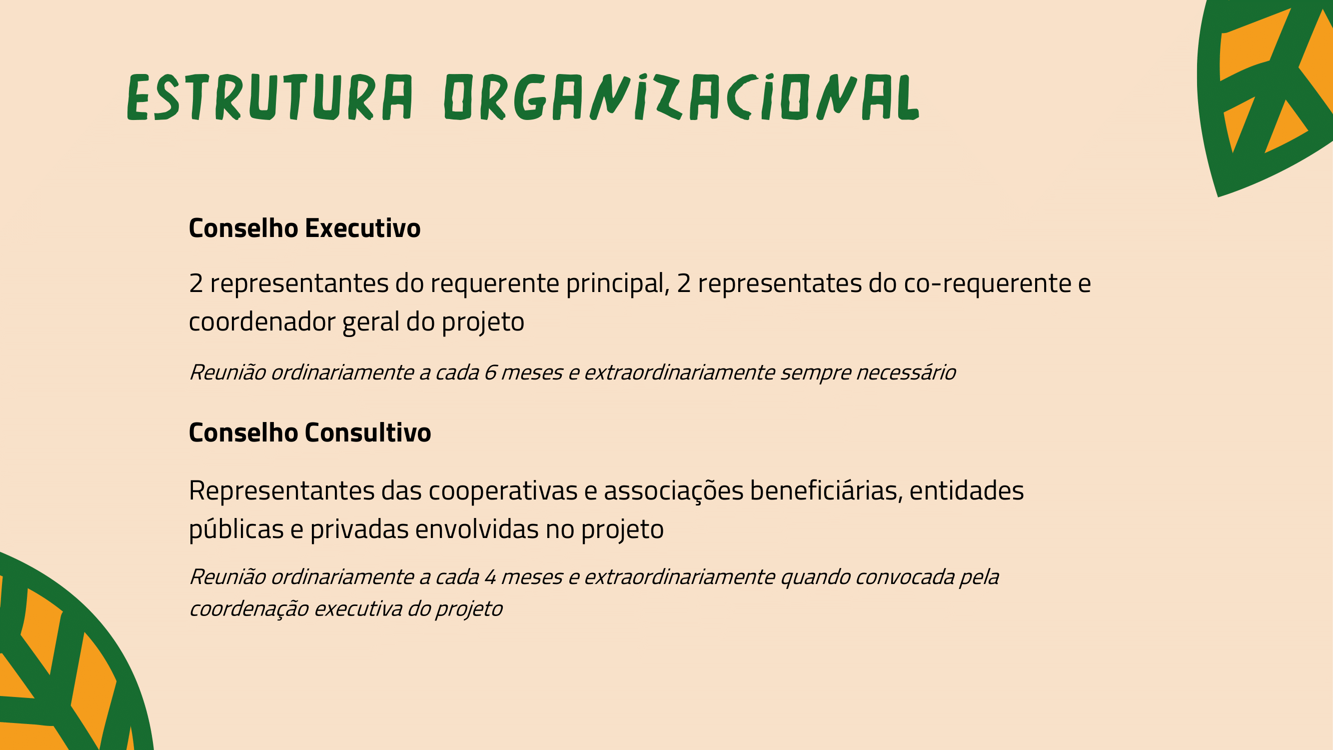 É formado por um Conselho Executivo composto por representantes das instituições proponentes e, um Conselho Consultivo formado por representantes das cooperativas e associações beneficiárias, entidades públicas e privadas envolvidas no projeto. Atualmente o Conselho Consultivo é formado pelas organizações: