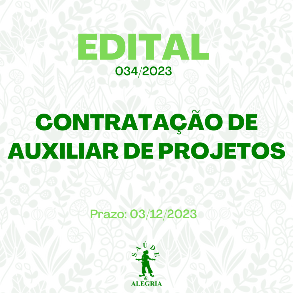 O Centro de Estudos Avançados de Promoção Social e Ambiental – CEAPS torna público o Termo de Referência 034/2023 para contratação de um(a) Auxiliar de Projetos para o Setor de Educação, Comunicação e Cultura (EDUCOM) do Projeto Saúde e Alegria, com atuação em projetos socioambientais, para acompanhar o planejamento e execução de atividades internas e externas, dar apoio administrativo e elaborar relatórios de atividades.
