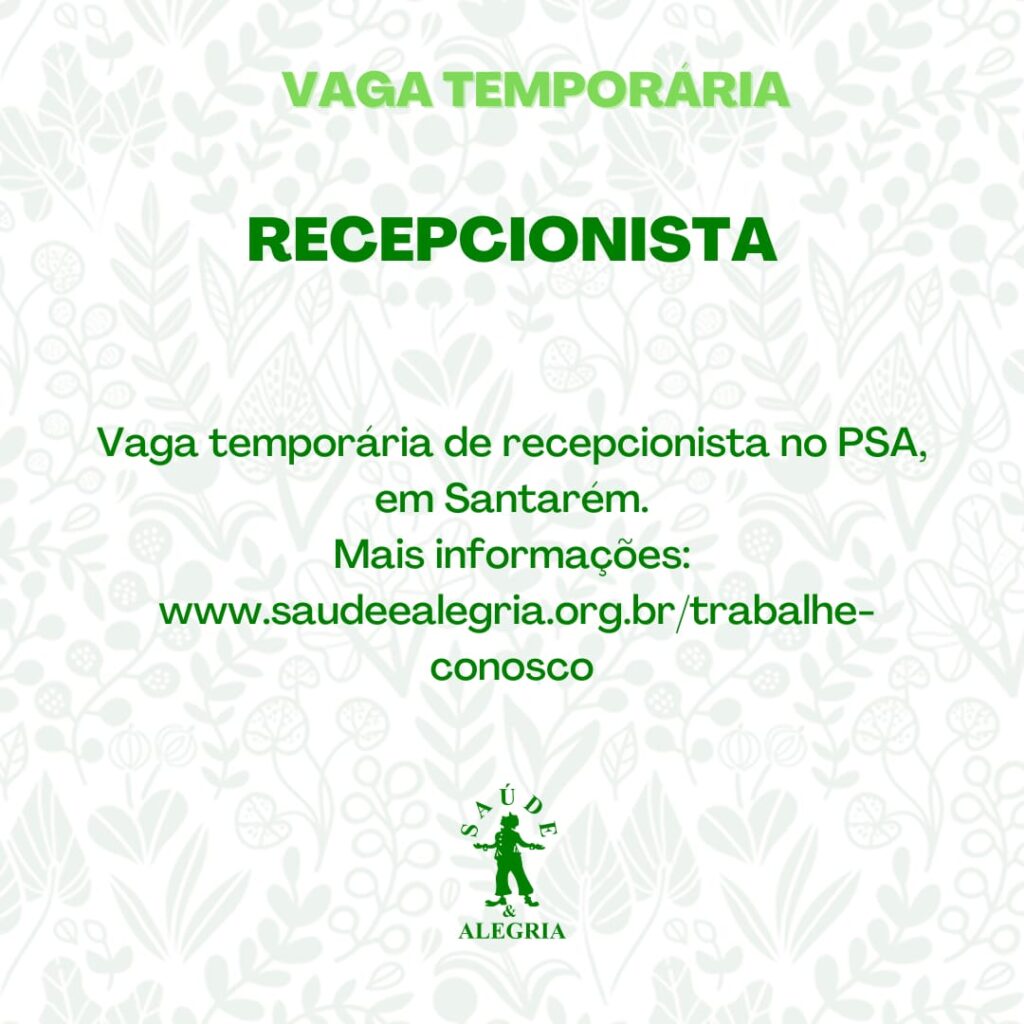 VAGA ABERTA PARA RECEPCIONISTA – SANTARÉM