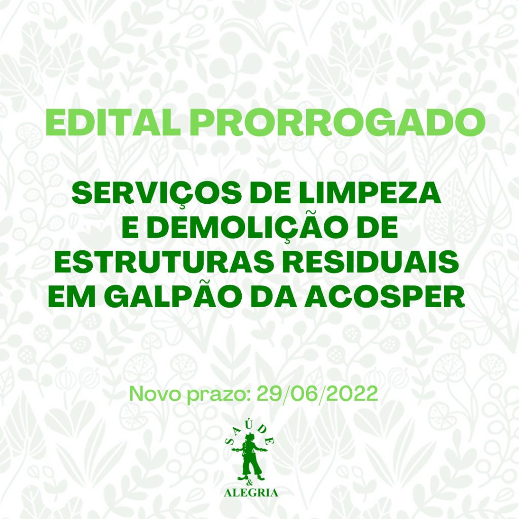 O Centro de Estudos Avançados de Promoção Social e Ambiental – CEAPS torna público o TERMO DE REFERÊNCIA (Nº 019/2022) para Contratação de pessoa jurídica para execução de limpeza de camada vegetal em terreno, demolição e retirada de estruturas em alvenaria e concreto residuais em galpão na sede da Cooperativa dos Trabalhadores Agroextrativistas do Oeste do Pará, Município de Santarém, Estado do Pará, conforme memorial descritivo anexo.