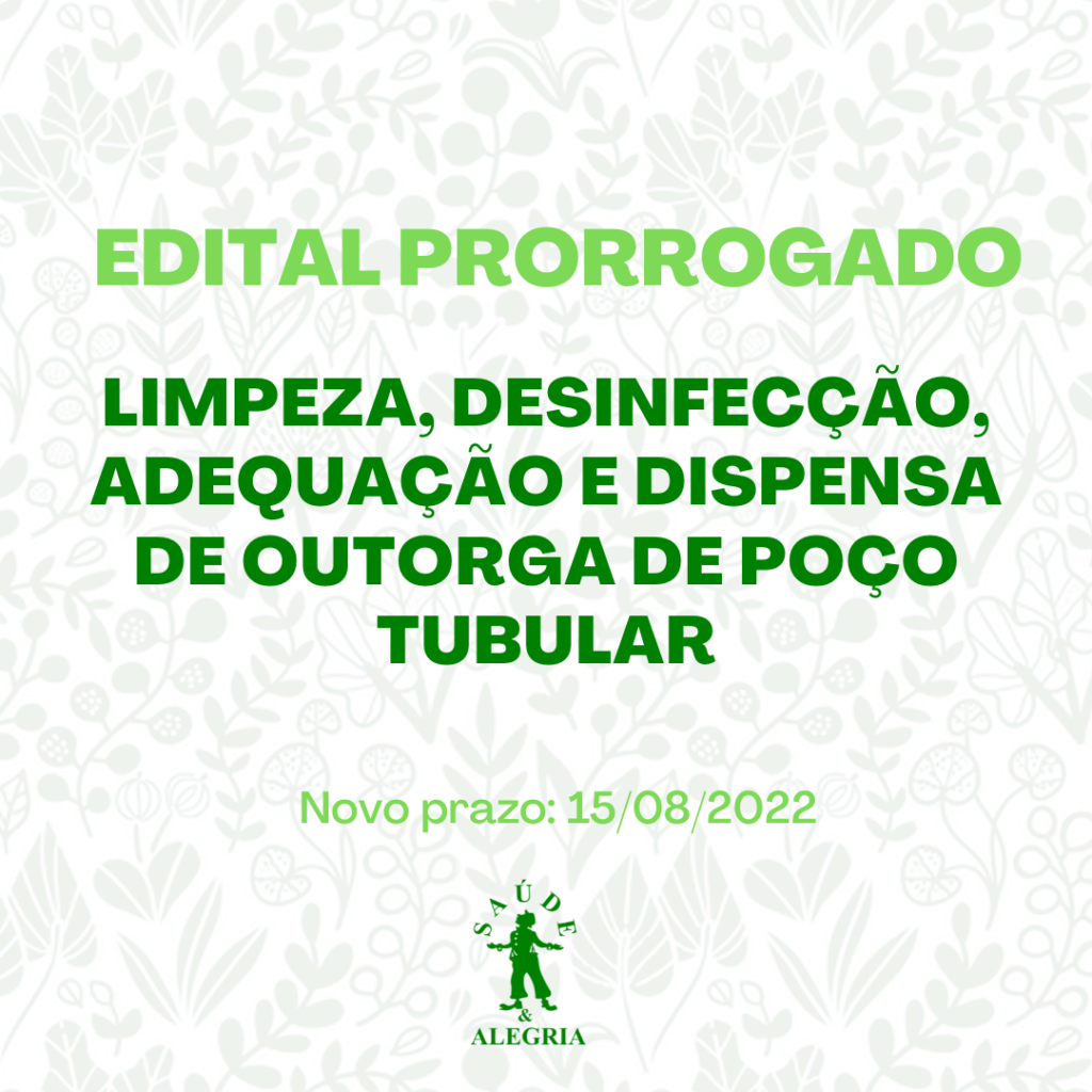 O Centro de Estudos Avançados de Promoção Social e Ambiental – CEAPS torna público o TERMO DE REFERÊNCIA (Nº 024/2022) para contratação de pessoa jurídica especializada para limpeza, desinfecção, adequação e dispensa de outorga de poço tubular na comunidade Vista Alegre do Capixauã; Dispensa de outorga na comunidade São Miguel, ambas na RESEX Tapajós Arapiuns, Município de Santarém, Estado do Pará, conforme memorial descritivo em anexo.