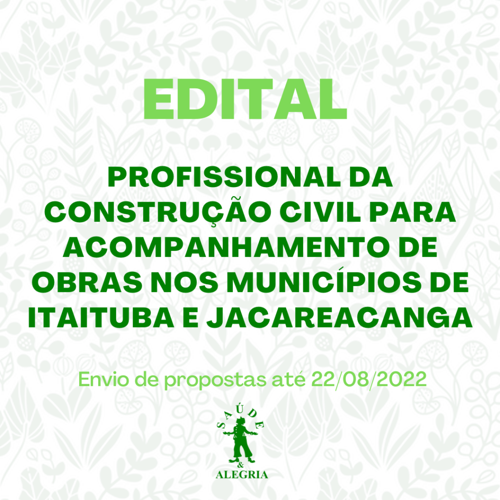 O Centro de Estudos Avançados de Promoção Social e Ambiental – CEAPS torna público o TERMO DE REFERÊNCIA (Nº 027/2022) para contratação de pessoa física com o título de Técnico em edificações/ Técnico em Saneamento/ Engenheiro Civil/ Engenheiro Sanitarista ou pessoa jurídica especializada para atividades relacionadas à acompanhamento e gerenciamento de obras em área rural nos Municípios de Itaituba e Jacareacanga, no Estado do Pará, conforme memorial descritivo anexo.