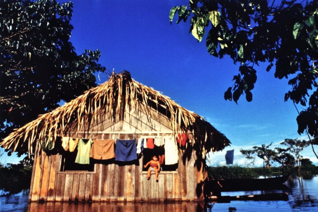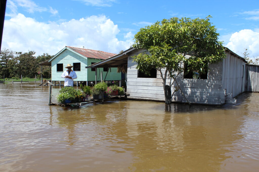 No período de abril a junho, quando as águas do rio Amazonas inundam totalmente os ambientes de várzea.