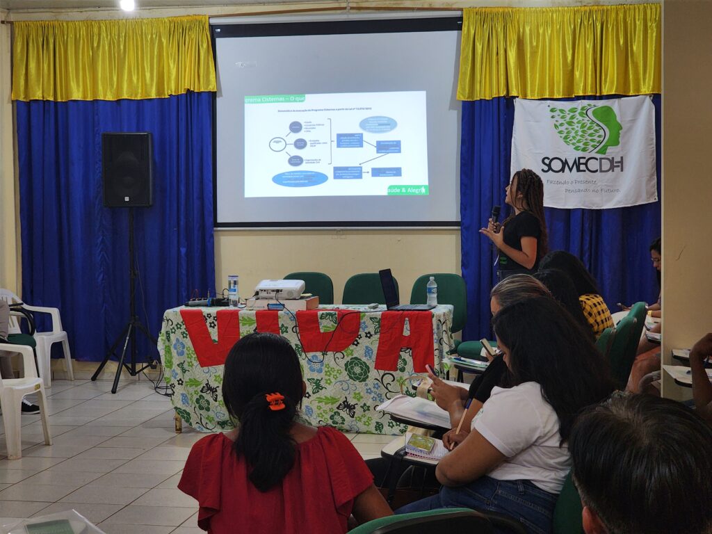 O Encontro foi promovido pela executora SomecDH em parceria com o Projeto Saúde e Alegria, gestor do Programa na região. A coordenadora do Programa de Infraestrutura Comunitária do PSA, Jussara Batista, destacou a importância do encontro para a formação dos representantes das comunidades beneficiadas. “Reunimos 13 representantes das comunidades beneficiadas pelo primeiro edital para a etapa de formação, para entender quais tecnologias sociais e possam levar essas informações”, disse Jussara.