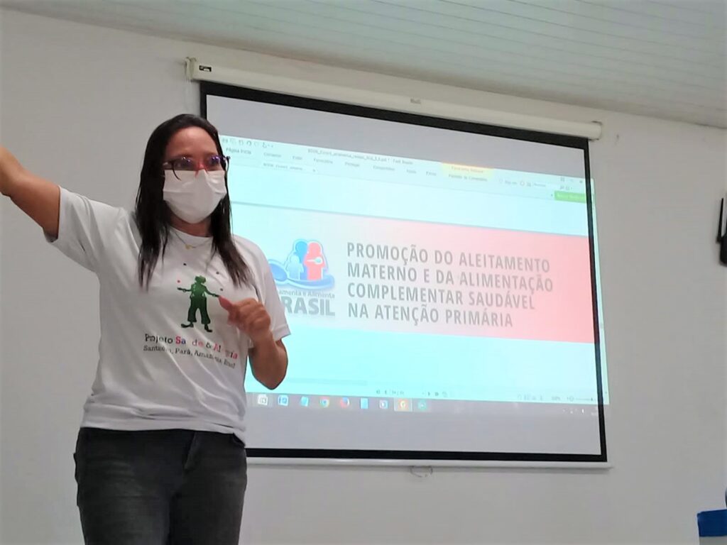 “O município tem nove tutores formados e com esse curso poderemos formar mais 26 tutores. Essa estratégia pode trazer recursos para o município. O mais importante é sensibilizar os profissionais que atuam em áreas distantes e os comunitários na questão do aleitamento materno e alimentação complementar adequada. Essa oportunidade pode capacitar profissionais de saúde nesses temas como também esses tutores podem estar formando novas equipes em outras UBSs. É muito importante ter essa parceria entre o Projeto Saúde e Alegria, Semsa e Ufopa” – esclareceu a enfermeira do PSA, Marcela Brasil.