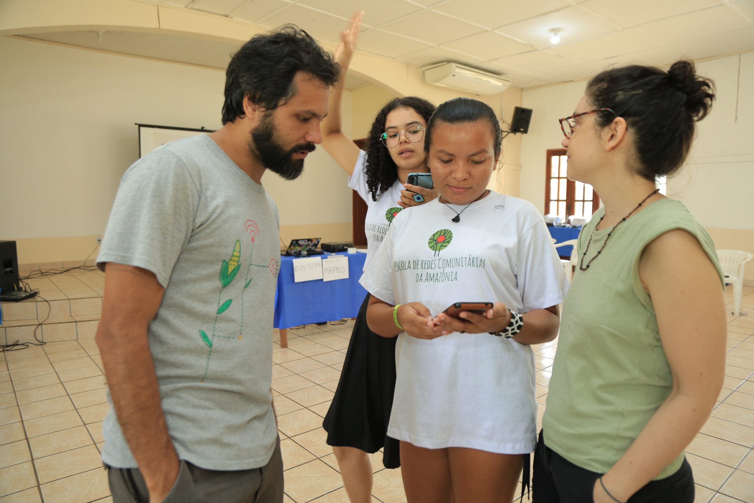 A Escola Redes Comunitárias é parte da iniciativa global “Conectando os Desconectados”, promovida pelas organizações APC e Rhizomatica e executada no Brasil pelo Projeto Saúde e Alegria. Tem 21 alunos em três estados da Amazônia Legal (Acre, Amazonas e Pará), sendo elas: no Pará, os projetos Ciência Cidadã na Aldeia Solimões e Guardiöes do Bem Viver no PAE Lago Grande – ambos no município de Santarém – e a Rede Águas do Cuidar/ Casa Preta na Ilha de Caratateua, grande Belém. No estado do Amazonas, a Aldeia Marajaí, município de Alvarães – Médio Solimões; o Grupo Formigueiro de Vila de Lindóia em Itacoatiara; e a Rede Wayuri em São Gabriel da Cachoeira. No Acre, a Aldeia Puyanawa em Mâncio Lima.