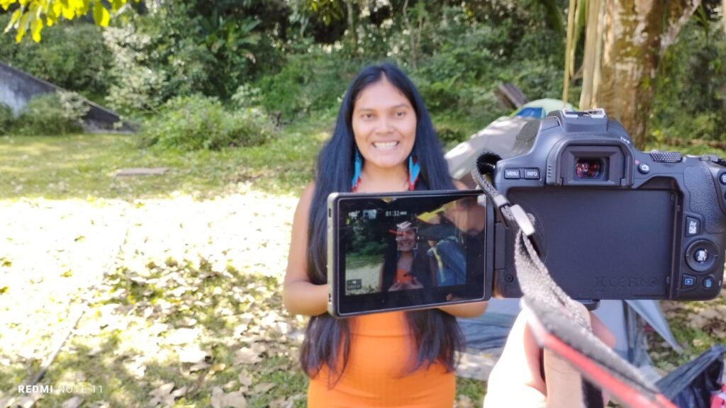 Já na aldeia Solimões, os trabalhos para construção do espaço físico da rádio Sapucaia seguem em ritmo acelerado. Por lá, a expectativa é de potencializar a rádio, equipada em 2022 pela Escola de Redes Comunitárias da Amazônia com potência de 15 watts, sintonizada na 88.0 FM, atingindo o raio de um quilômetro abrangendo as 55 famílias e 185 habitantes da aldeia.