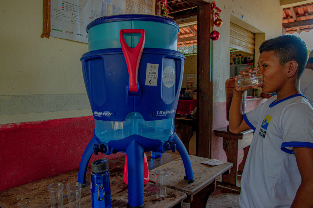 Na aldeia Aningalzinho, a lembrança do cacique Tomas Santana é de quando a água do rio era considerada segura para o consumo. Com o aumento da poluição, o risco de contaminação preocupa os aldeados. “Eu acredito que a água está num jeito que nós não temos mais condição de tomar ela como antes. Não tem tratamento, ela é puxada direto pra gente usar. Agora com esse filtro aqui na escola vai ser muito bom pra nós, nossas crianças e adultos”, ressalta.