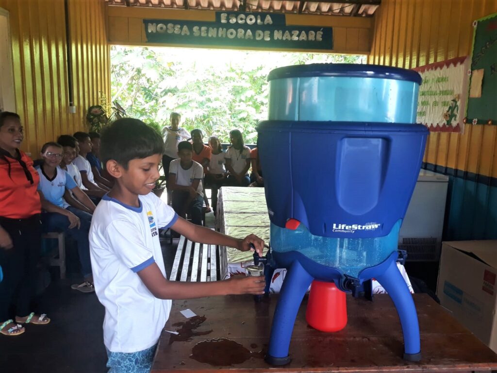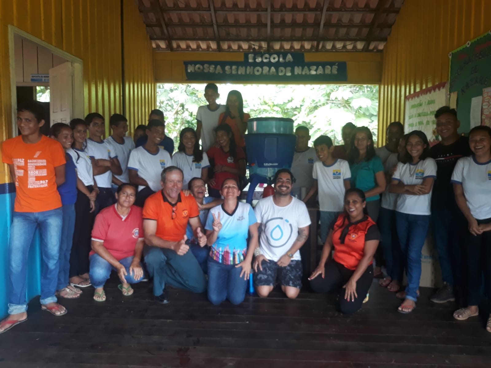 Novos filtros de água para uso comunitário desembarcaram em doze escolas municipais de Arapixuna, Urucurituba e Ituqui, região de águas barrentas da várzea do rio Amazonas.