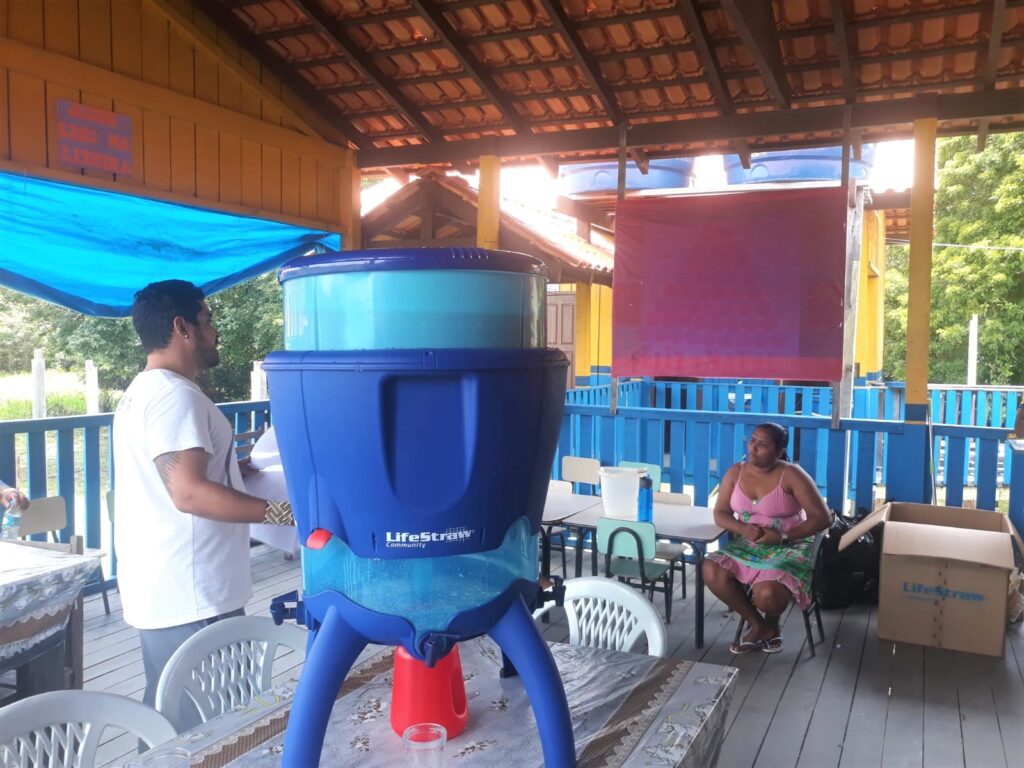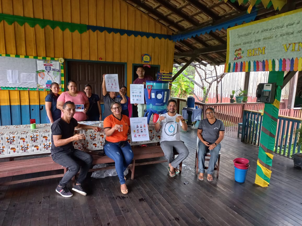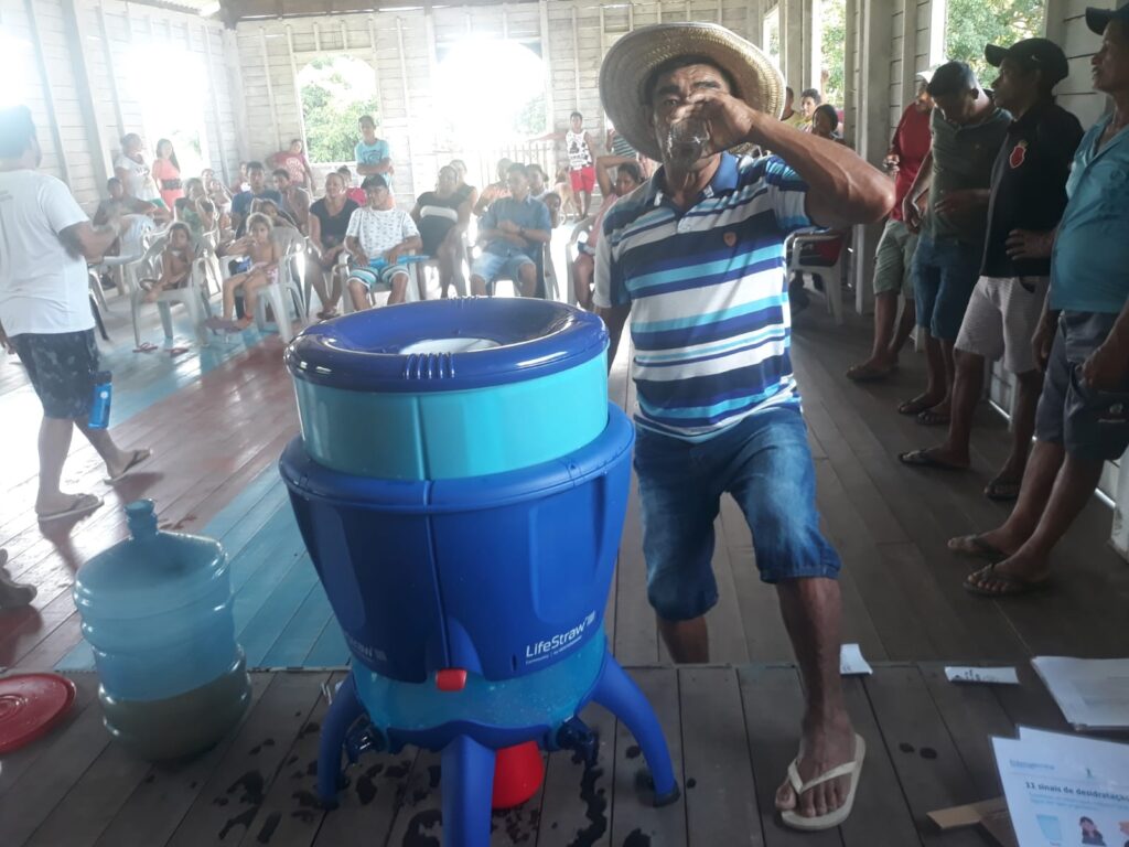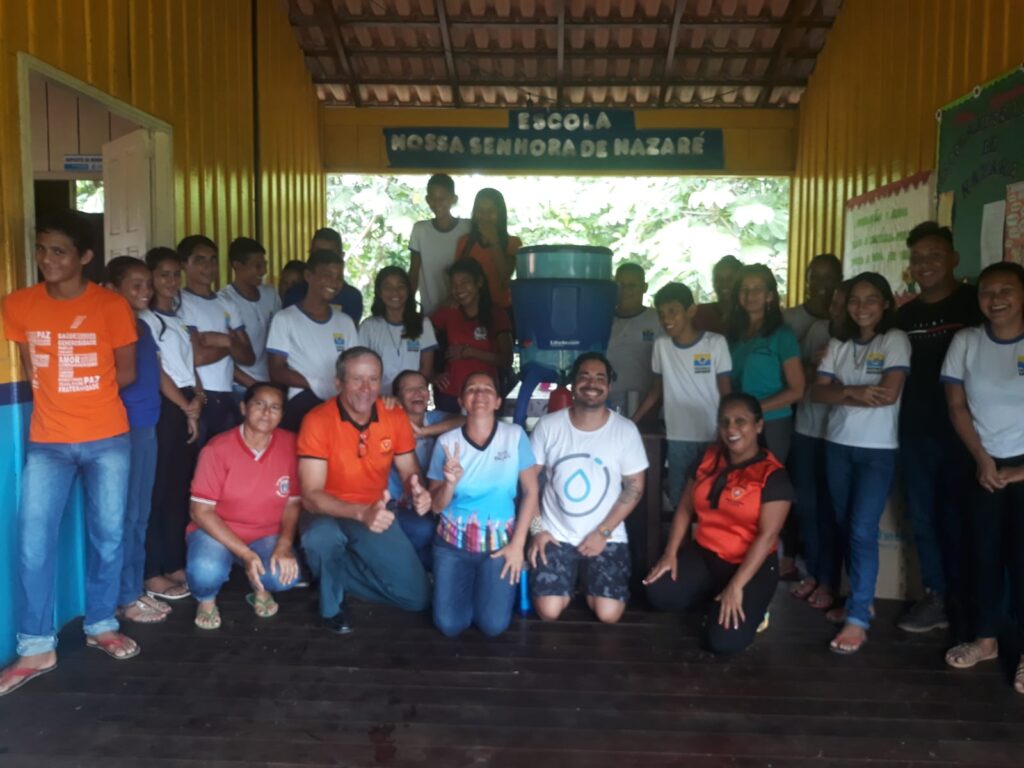 Devido nós usarmos a água barrenta do rio Amazonas, com a filtragem da água, é muito bom para as nossas crianças que vão beber água saudável, limpa”-  Carla Vasconcelos, Arapemã.