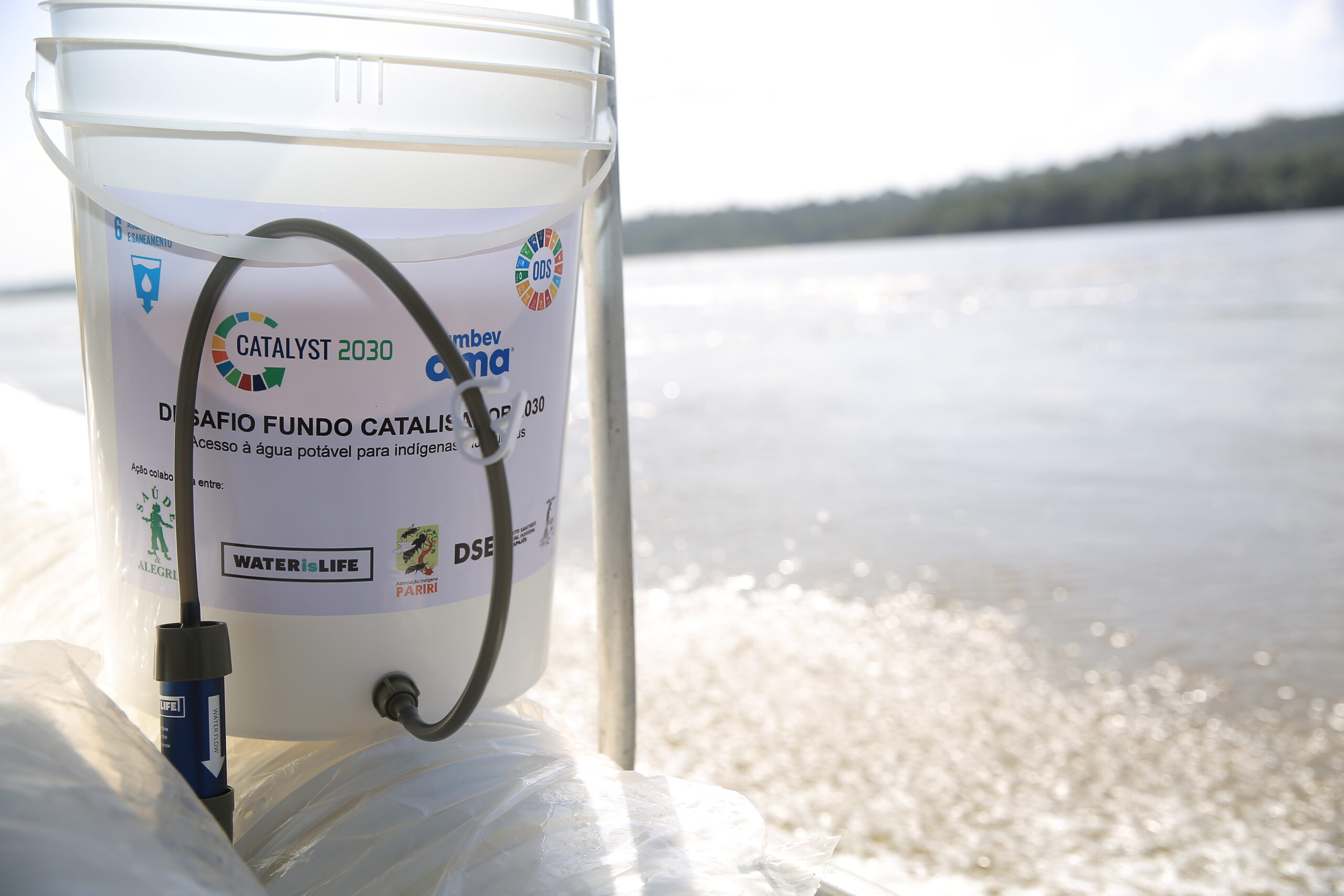 O Desafio Fundo Catalisador 2030 uniu esforços do Projeto Saúde e Alegria, Water is Life, DSEI Rio Tapajós, e as associações indígenas Pariri (Médio Tapajos) e Wakoborun (Alto Tapajos), com vistas a distribuição total de 600 filtros, adquiridos através do apoio da Água Ama/Ambev.