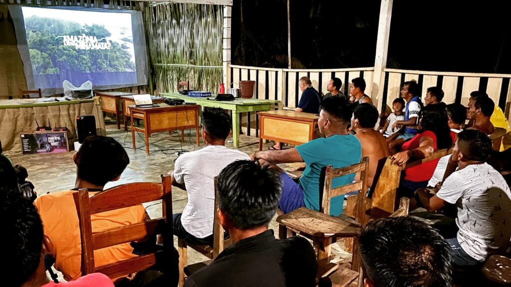 Enquanto o filme “Amazônia, uma nova Minamata?” era exibido na abertura do Festival Latino Americano de Cinema de Alter do Chão (CineAlter), o documentário foi também apresentado no VI Pusuruduk, onde muitos puderam se ver na tela. Dirigido por Jorge Bodanzky e produzido por Nuno Godolphim, mostra a luta dos Munduruku contra os garimpos ilegais em suas terras, a degradação, a exposição ao mercúrio. Uma cópia foi deixada para eles organizarem circuitos de exibição nas aldeias.