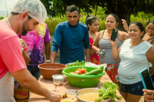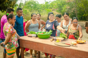 A partir da vivência dos territórios e identificação dos alimentos regionais com maior fartura nas comunidades e aldeias, nutricionistas, cozinheiros e participantes, elaboraram mais de cinquenta receitas ricas em nutrientes, explicou o cozinheiro da Gastromotiva, Rodrigo Sardinha: “Foi muito proveitoso. No primeiro ciclo desenvolvemos cinquenta receitas e algumas lições ficaram pra essa segunda. Falamos muito sobre insegurança alimentar, receitas direcionadas para os alimentos que tem nas comunidades. Foi super importante essa troca de conhecimentos”, conta.