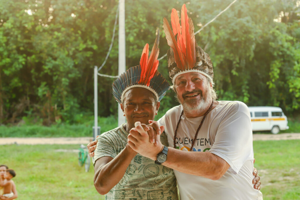 “Hoje a gente está feliz de ter recebido a equipe que veio fazer essa formação”, contou emocionado o Tuxaua da Aldeia, Leonardo Pereira, que homenageou o médico e fundador do PSA, Eugênio Scannavino e o presenteou com um cocar.