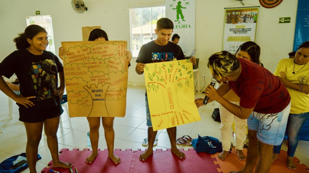 “A gente tá aqui com essas juventudes, trabalhando sobre, fortalecendo, na verdade, o protagonismo dos jovens. A gente não tá criando coisas novas. A ideia é o que também eles já fazem, que a gente pode fortalecer, já está fazendo alguma coisa pra colaborar, e como é que a gente busca incentivar cada vez mais, como é que a gente entende como é que isso funciona dentro de cada comunidade, dentro de cada aldeia, para que a gente possa estar ajudando, porque às vezes essa juventude já está fazendo algo, mas não está tendo reconhecimento, não está tendo apoio das suas próprias lideranças, dos seus próprios presidentes de comunidade” pontuou o coordenador Coletivo Jovem Tapajônico, Walter Kumaruara.
