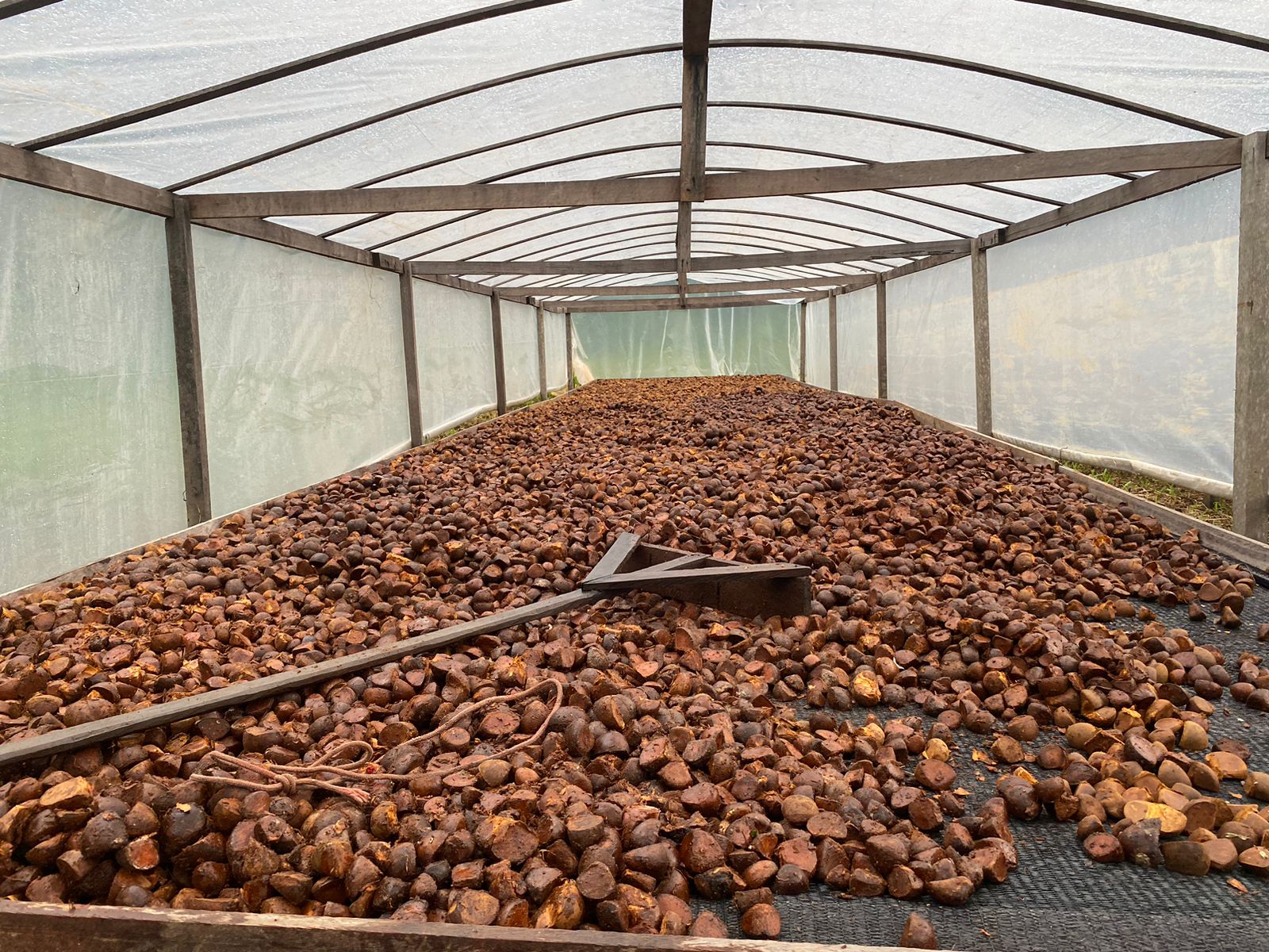 Os oito secadores construídos com medidas de 16 m x 4 m e capacidade de 2 toneladas de sementes molhadas, possibilitaram maior qualidade no processo de secagem, que envolve aeração, seleção de sementes inviáveis com presença de larvas, fungos e início de germinação.