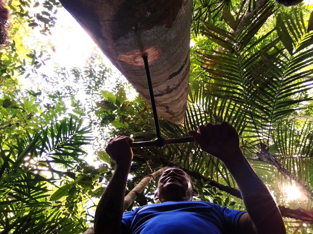 As atividades práticas incluíram a abertura de caminhos, limpeza ao redor das árvores, corte de cipós e aplicação de técnicas de perfuração, com o uso de equipamentos adequados e medidas de biossegurança. Ao final da oficina, os resultados foram avaliados, consolidando os conhecimentos adquiridos e reforçando a importância das boas práticas no manejo da copaíba para a sustentabilidade ambiental e social das comunidades envolvidas.