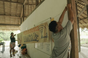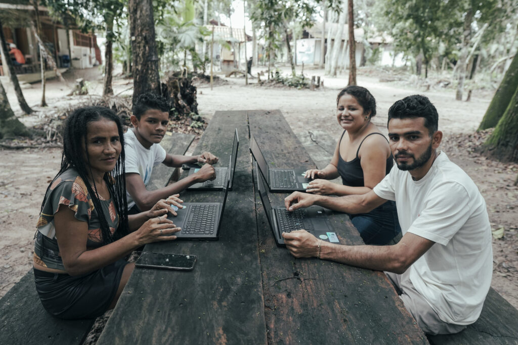 Em São Pedro, região do Arapiuns, uma Unidade Básica de Saúde recebeu conexão  para operar teleatendimentos e acesso aos moradores. Com a capacitação, Marilvana Sousa, explica que os moradores ampliarão possibilidades de defesa do bioma: “tudo isso que está acontecendo no nosso território vai facilitar ainda mais pra nós que moramos numa reserva, num território que a gente está querendo conservar”.