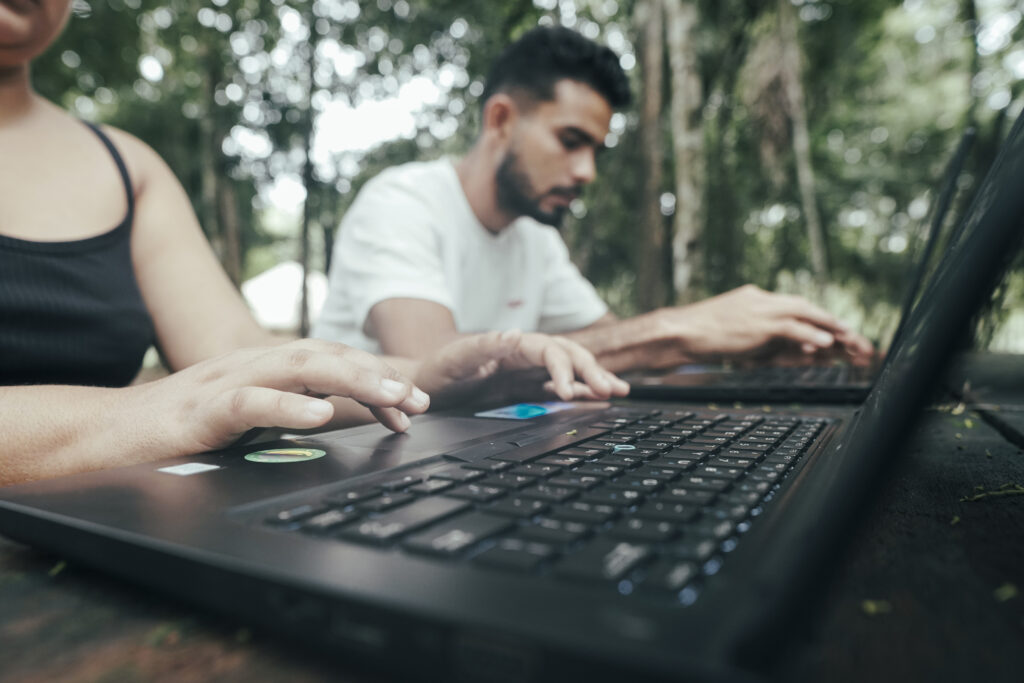 É o caso da aldeia Vista Alegre do Capixauã que tem uma pousada construída com apoio do PSA, uma experiência de turismo de base comunitária que pode se fortalecer com o uso da internet, como conta a liderança Claudete Kumaruara: “Aprendi a usar a internet de forma correta, porque a gente tem que ter cuidado com os nossos dados na internet porque muitas vezes a gente vai acessando qualquer coisa e permitindo e vai acessando nosso sistema de dados. Levar essa internet para nossa comunidade é importante porque a gente faz a divulgação do nosso turismo de base comunitária, nossas lutas, a nossa existência e monitoramento territorial. Uma arma pra gente se defender”.