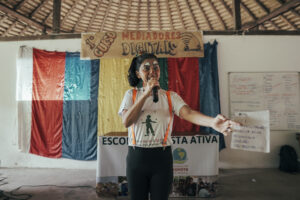 “Pra mim foi um privilégio participar desse projeto e junto com essas pessoas, aprender como manusear esse aplicativo, como trabalhar com a internet e levar conhecimento pra esses territórios” – Adamiana Santos, quilombo São José do Ituqui.
