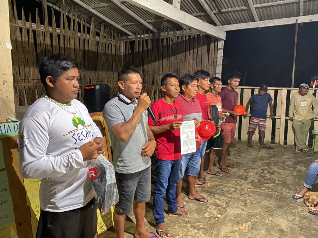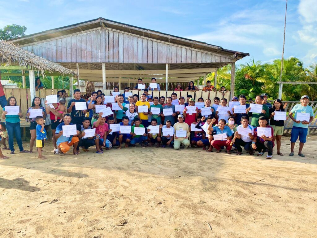Nos caminhos da floresta, castanheiras centenárias representam a resistência e o sonho dos povos tradicionais em conquistar segurança econômica a partir da coleta de frutos de espécies de valor comercial e manejadas na área. Em agosto de 2022, eles solicitaram a visita do Projeto Saúde e Alegria para planejar as atividades produtivas potenciais e fornecer assistência técnica aos agroextrativistas. “Eles mesmos organizaram quase 70 lideranças do rio Cururu, Teles Pires e início do Tapajós, e a gente realizou as oficinas para começar a construir a organização, estruturação interna intercomunitária, definição dos coletivos, das articulações, responsabilidades e papéis, de modo a poder avançar na estruturação dessas cadeias produtivas”, explicou o coordenador de Organização Comunitária do PSA, Carlos Dombroski.