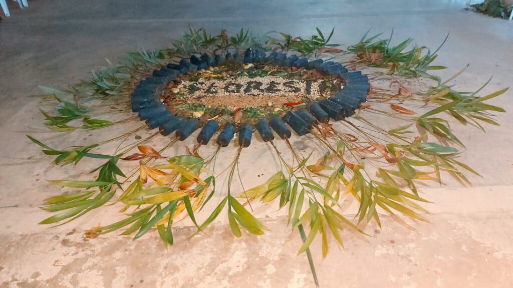 “É uma técnica de misturar sementes de diversas espécies de maneira que possam germinar e preencher a área com vegetação. A muvuca que nós fizemos, foi adaptada para a realidade da agricultura familiar da região. Utilizamos 280 mudas de dez espécies frutíferas, florestais e de adubação verde” – explicou o engenheiro florestal do PSA, Steve McQueen.
