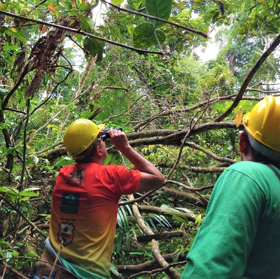 Lunetas e binóculos auxiliam os moradores da comunidade Jaguarari, região da Flona em Belterra, na identificação de árvores com potencial de coleta de andiroba. Os extrativistas que praticam o manejo da espécie florestal na região há mais de vinte anos, observam as flores e frutos, e a partir do mapeamento, poderão estimar a média de coleta e o período, explicou a engenheira florestal do Projeto Saúde e Alegria, Maria Soliane: “estamos indo em campo nas áreas onde já são realizadas coletas. Estamos verificando como está a produção de frutos e previsão de safra. A gente está com a expectativa de uma boa safra, que nós consigamos pelo menos dez toneladas de andiroba seca em 2022”.